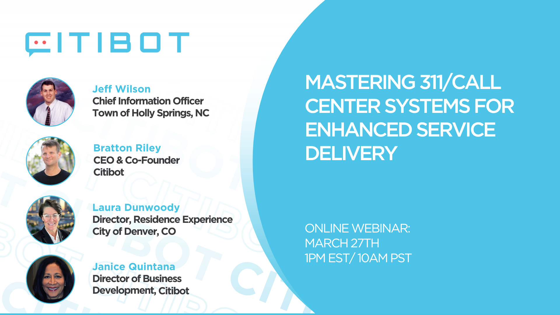 Join Rich Karbowiak, Marketing Technology Manager for the City and County of Denver, for a webinar on expanding resident communication with Citibot’s AI-powered chat. Learn how his team connected with residents in 75 languages across multiple channels—automating inquiries, improving response times, and reducing call volume.